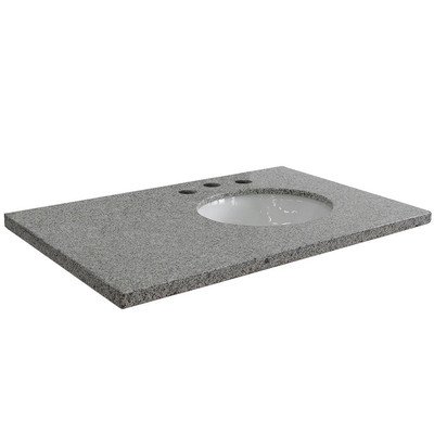 The Baltic brown granite counter top is pre-drilled for faucet installation and also include an under mount ivory ceramic sink. Foremost ST37228UT 37-Inch Ubatuba Black Granite Vanity Top with Pre-Attached Vitreous China Undermount Sink. Item#: 906071; MFR#: RECTO3722-4-BR; Delivery Available. The thick 3 cm top comes with a matching backsplash.